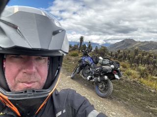 An epic ride. My first experience in the paramo ecosystem with its odd plants that look like they are from another planet. The road is unpaved, single track, hard-packed, not dusty, some mud. There were very few vehicles along the way. It's rough but easy to ride, with a big climb out of El Cucoy, then a plateau, followed by a long descent on the other side to Chita.