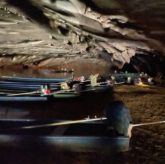 The cave is renowned for the river that runs through it, traversed by boat 7km roundtrip. Or one way: when I purchased my ticket, was asked if I was taking my motorbike. Apparently, some adventurous people traverse their bikes by boat through the tunnel, and then continue their journey on the dirt track road on the other side. Considering the boat was really unstable, and seemed like it could have easily capsized, it's hard to believe anyone would take this approach and transport a "big bike" this way.